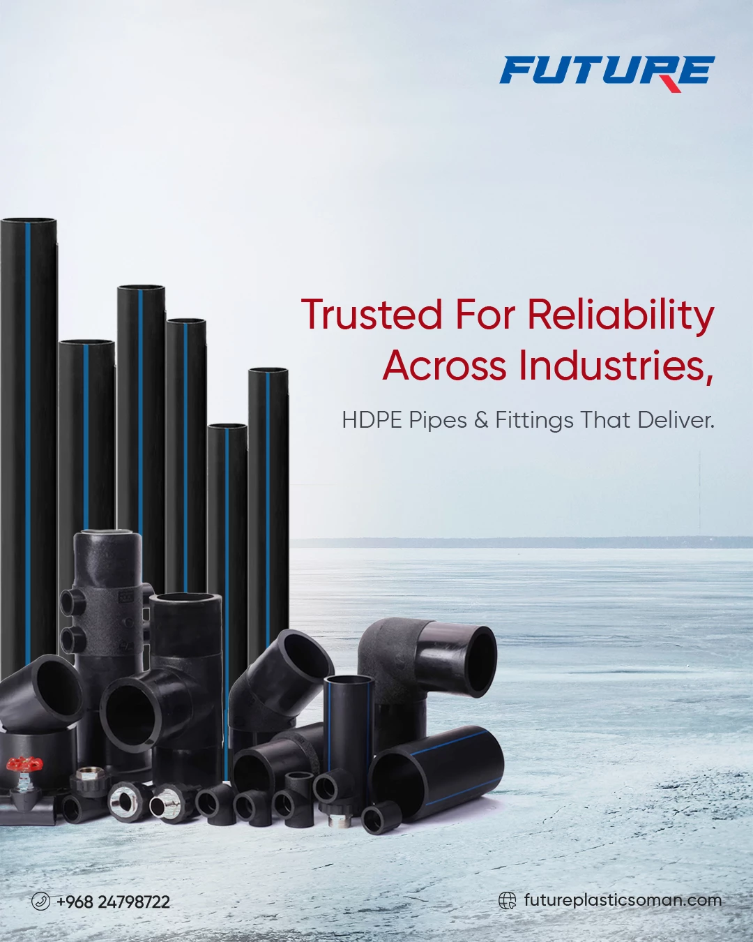 Future Plastics continues to be the preferred choice for PVC HP Pipes Oman, UPVC drainage systems, HDPE pipe fittings Oman, and irrigation pipe solutions—delivering reliable, long-term performance for every project.